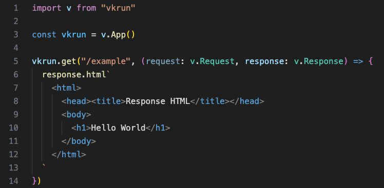 vkrun.get("/example", (request: v.Request, response: v.Response) => {
